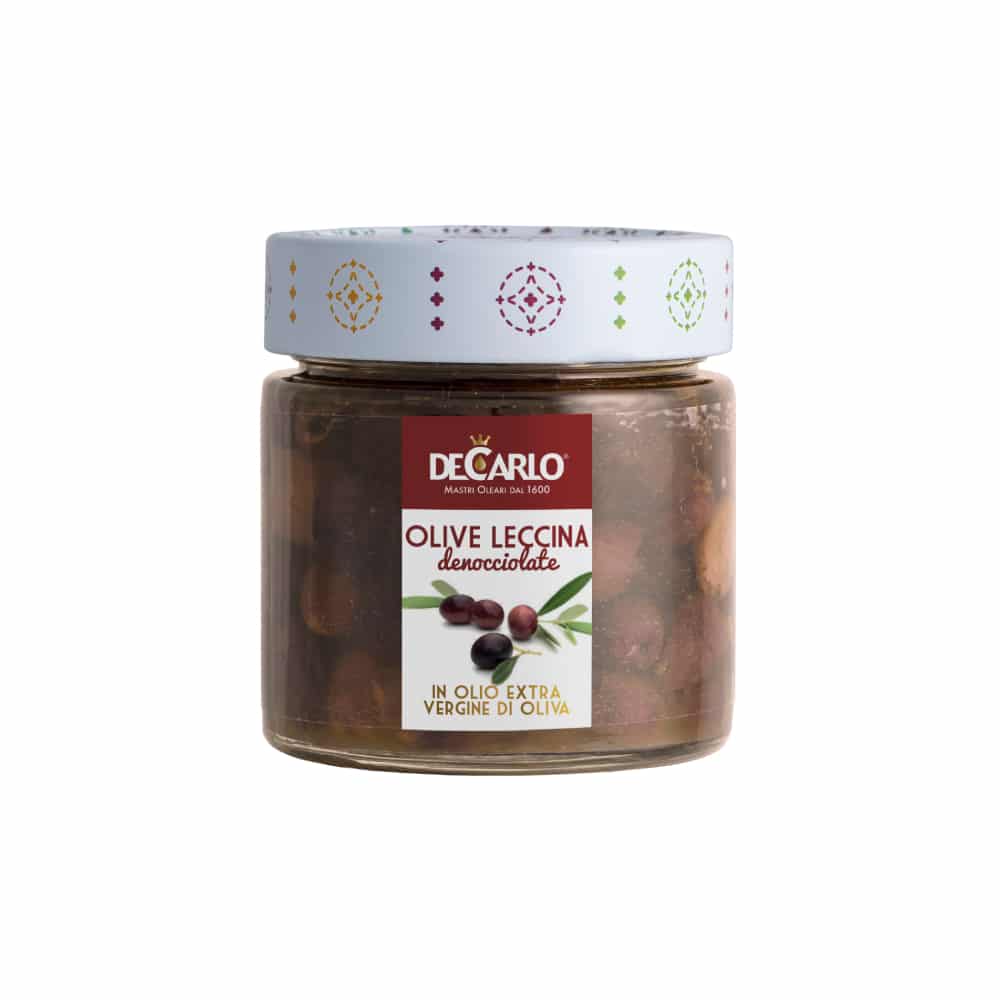 DECARLO PITTED LECCINA OLIVES EVOO 200GR