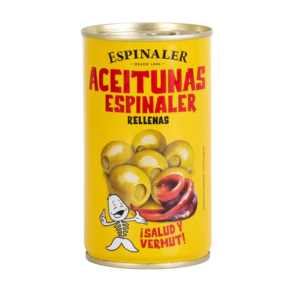These tinned green olives by Espinaler are made using Manzanilla Fina olives, pitted, filled with anchovy paste and packed in brine. Espinaler is a heritage Spanish company, which produces a wide range of products including tinned seafood and a now-iconic sauce.